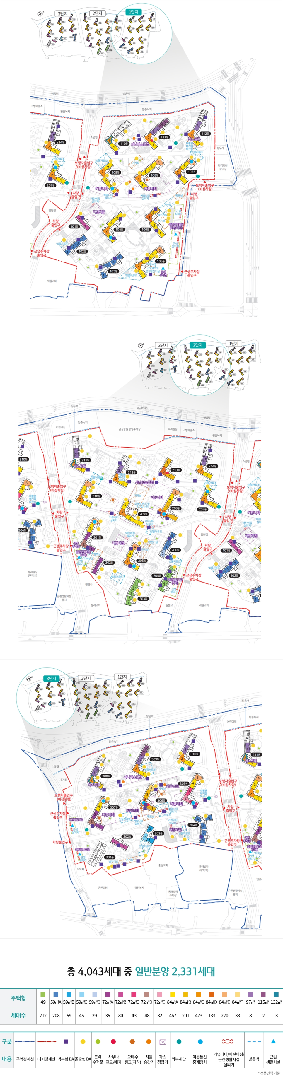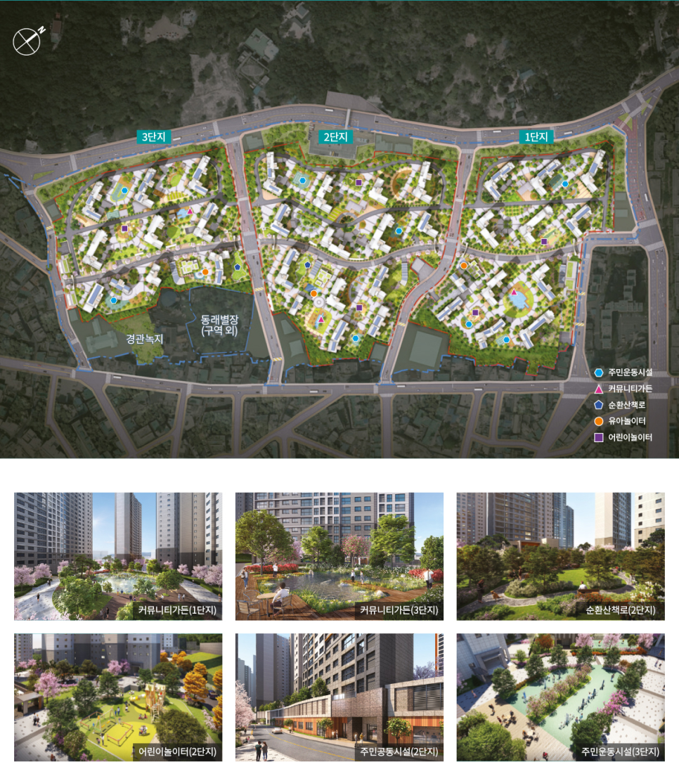 ● 1단지가 둘의 행정구역(동래구 및 금정구)에 걸쳐 있어 이전고시 시점에서 1단지 택지에 대한 신규 지번 부여 시 지방자치단체의 결정에 따라 행정구역이 조정될 수 있습니다.