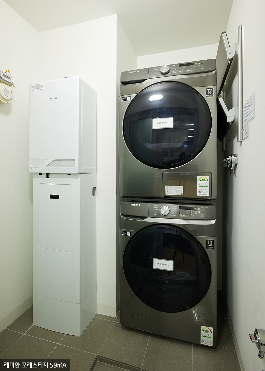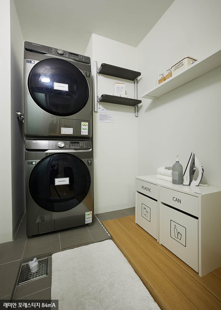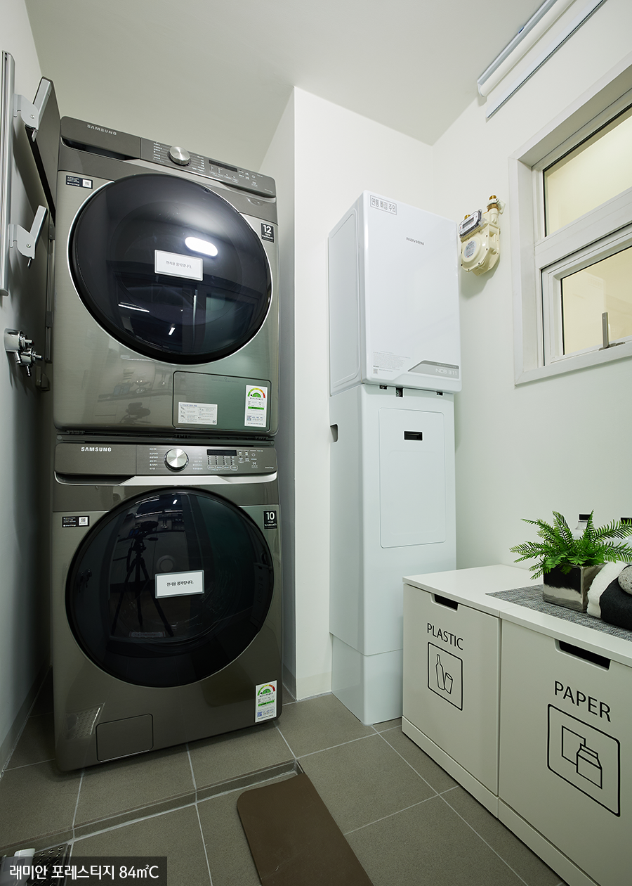 세탁실입니다. 맞춤형 세탁기와 건조기 공간을 제공합니다.