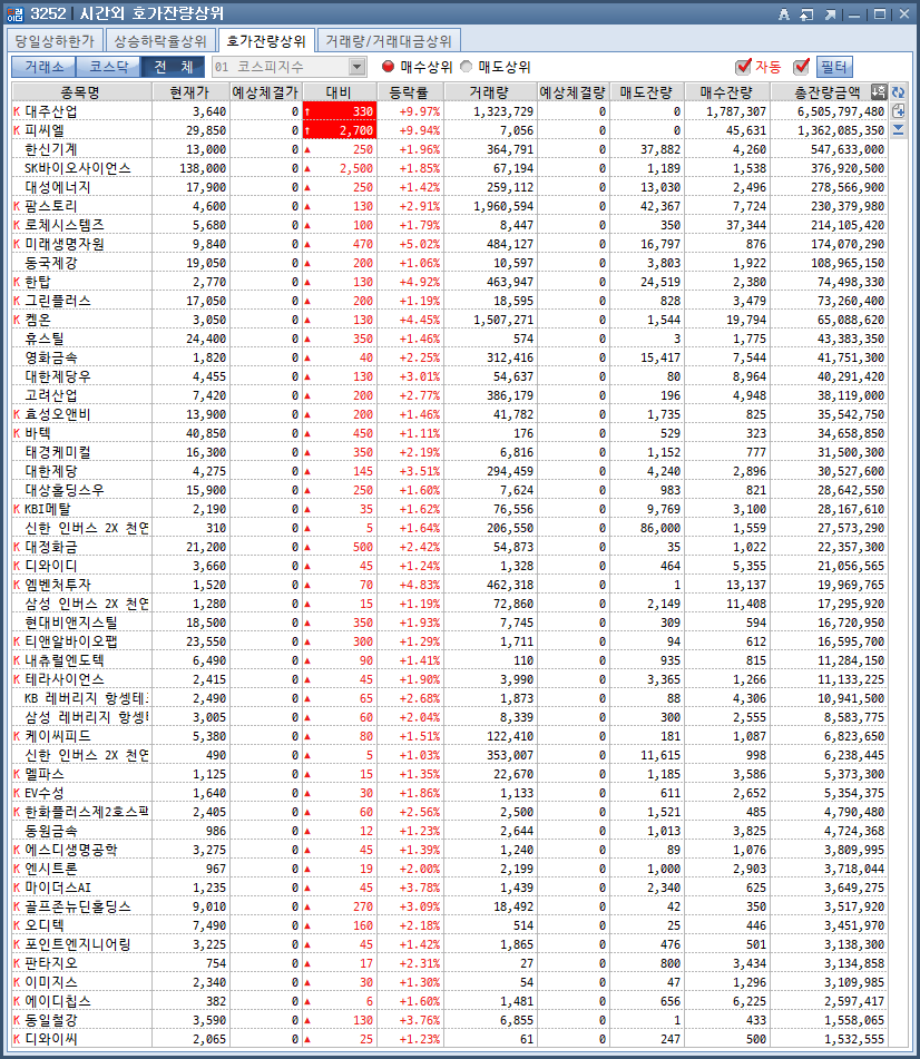 09:00 ~ 15:30까지 일일 운영되는 주식시장 내 가장 많은 거래가 일어나는 구간 중 상승률 상위를 기록한 종목의 핵심 요약